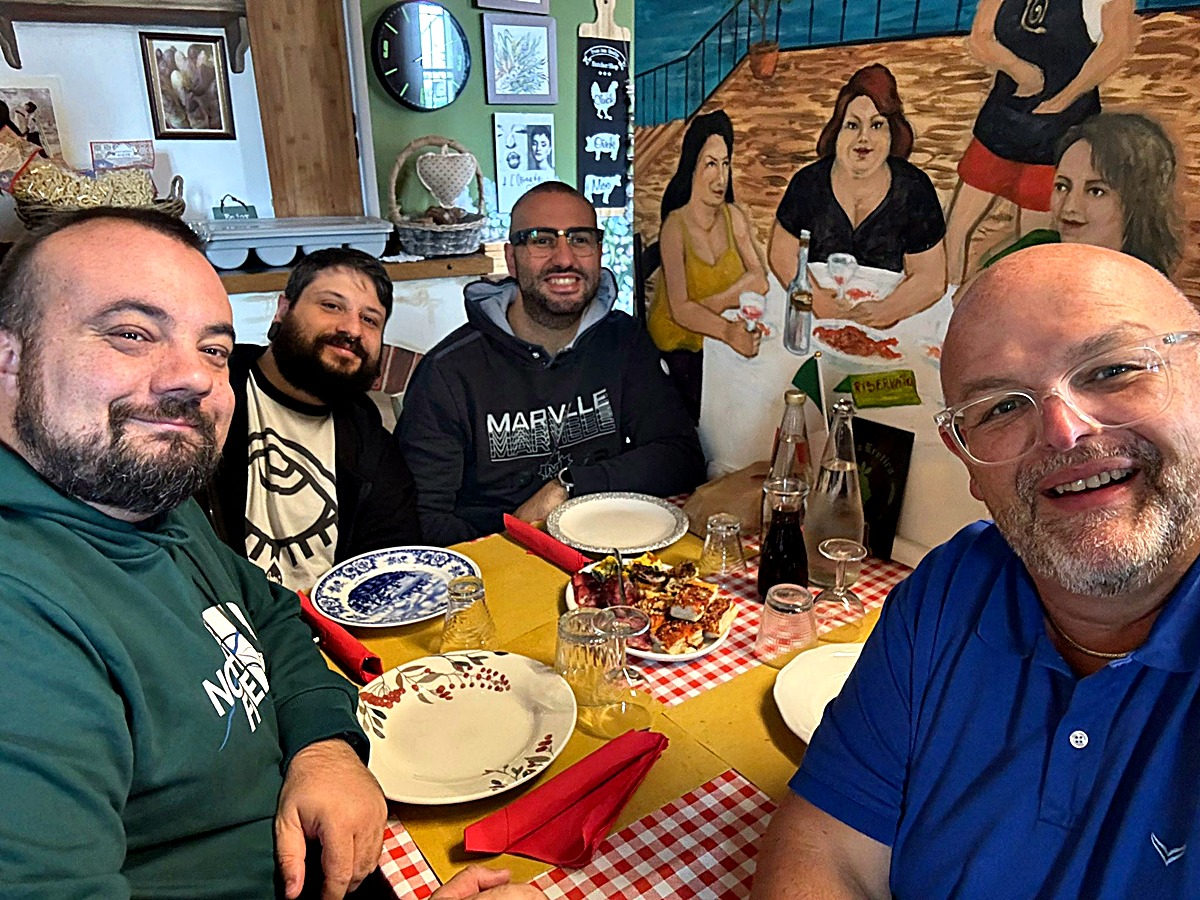Zum Mittagessen fanden sich alle in der Osteria Sociale in Mezzago ein. Dort erwartete die Gäste ein kleines, aber feines Menü mit sizilianischer Pasta und köstlichen Süßigkeiten – ein kulinarischer Genuss, der für alle ein echtes Highlight war.