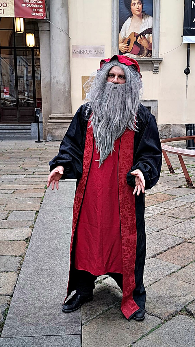 Der Nachmittag stand ganz im Zeichen eines besonderen Ausflugs: Ziel war Mailand, eine der bedeutendsten Kulturstädte Italiens. Im Zentrum der Aufmerksamkeit stand niemand Geringeres als das Universalgenie Leonardo da Vinci, der sich – mit einem Augenzwinkern –persönlich die Ehre gab, die Gruppe durch die Innenstadt zu begleiten. Dabei wurde auf lebendige Weise über sein Leben und Wirken in Mailand berichtet – ein unterhaltsamer und lehrreicher Rundgang.
